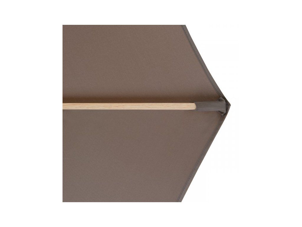 Tento slunečník udělá radost milovníkům dřeva. Díky nadčasovému vzhledu v imitaci jasanového dřeva a potahům v teplých přírodních barvách se hodí téměř na každý balkón, terasu nebo zahradu. Slunečník je vybaven kličkou, která umožňuje pohodlné otevírání a zavírání. Rám je vyrobený z vysoce kvalitního hliníku a vzpěry z oceli, což mu dodává dlouhou životnost. Potah má vynikající ochranu proti UV záření 80+. Díky ventilačnímu otvoru ve střeše se pod slunečníkem nekumuluje horký letní vzduch.