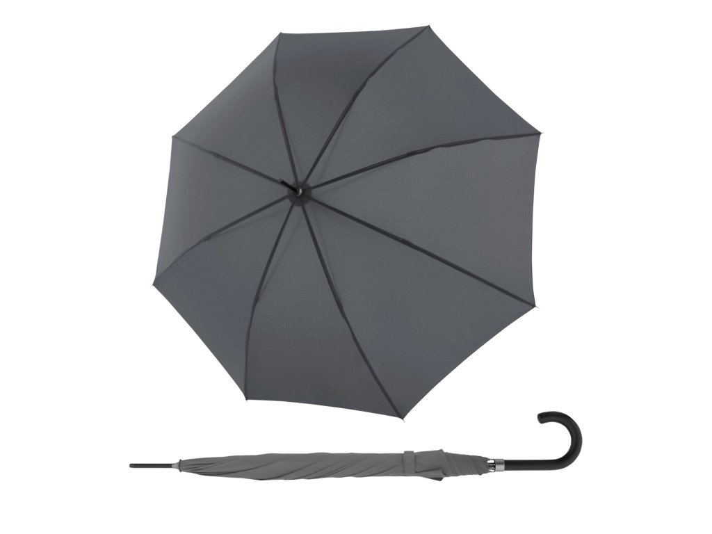 Vystřelovací holový deštník s jednobarevným vzorem. Má velmi širokou střechu, takže se pod ním mohou před deštěm ukrýt i dvě osoby. Plastová ručka krásně padne do ruky a k tomu je ještě barevně sladěná se zbytkem deštníku. Zbytek konstrukce je vyrobený z oceli a sklolaminátu. Tato kombinace materiálů společně s kvalitním zpracováním deštníku zaručuje vysokou odolnost a pružnost, takže se nepoškodí, ani když jej převrátí vítr. Potah je vyrobený z rychleschnoucího polyesteru, který je odolný vůči změnám vlhkosti a teplot, nesráží se.