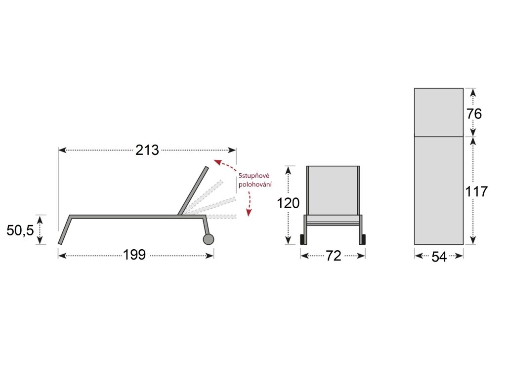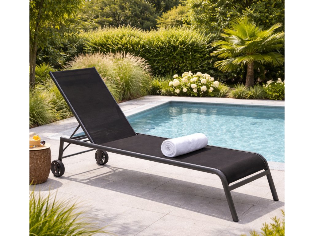 - Polohovatelné zahradní lehátko s kolečky pro snadné přemístění