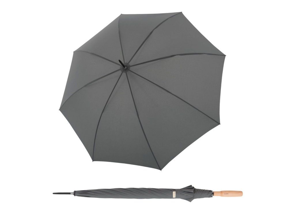 Rukojeť je z přírodního dřeva s FSC certifikací (schima superba), která zaručuje šetrné a odpovědné hospodaření s lesy. Deštník tak kombinuje funkčnost s přírodním designem a udržitelným přístupem. Samozřejmostí je 100% PFC free úprava – vodoodpudivost je zajištěna bez použití škodlivých chemikálií typu C8. Díky tomu je deštník bezpečnější pro vás i životní prostředí.